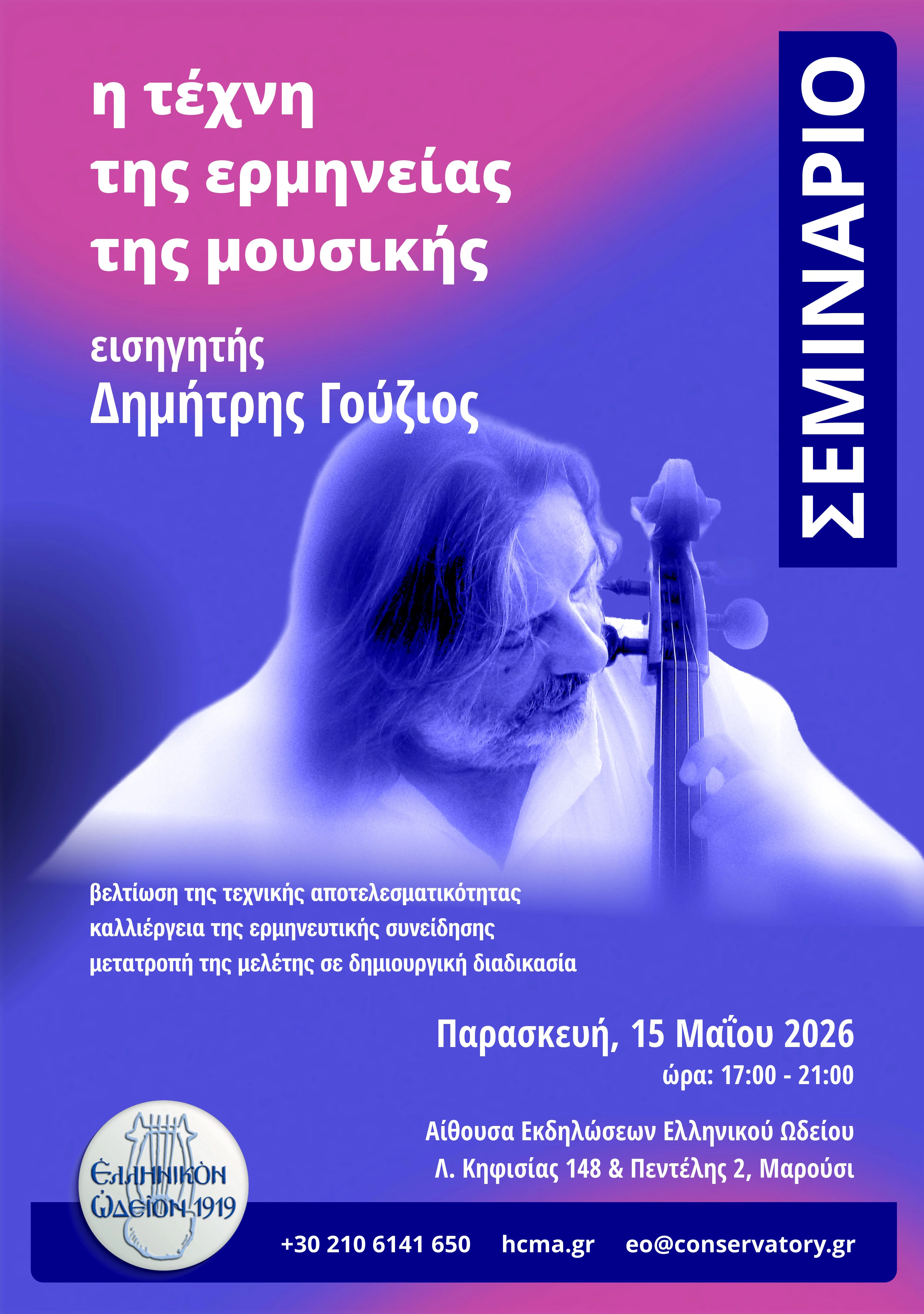 Ένα βιωματικό και εμπνευσμένο σεμινάριο αφιερωμένο σε σπουδαστές και νέους μουσικούς όλων των οργάνων. Στόχος του είναι να βοηθήσει τους συμμετέχοντες να κατανοήσουν σε βάθος τα μουσικά έργα που ερμηνεύουν, να αντιμετωπίσουν ουσιαστικούς τεχνικούς και ερμηνευτικούς προβληματισμούς και να ανακαλύψουν πρακτικούς τρόπους μελέτης που οδηγούν σε πιο άρτιο, ελεύθερο και προσωπικό μουσικό αποτέλεσμα.